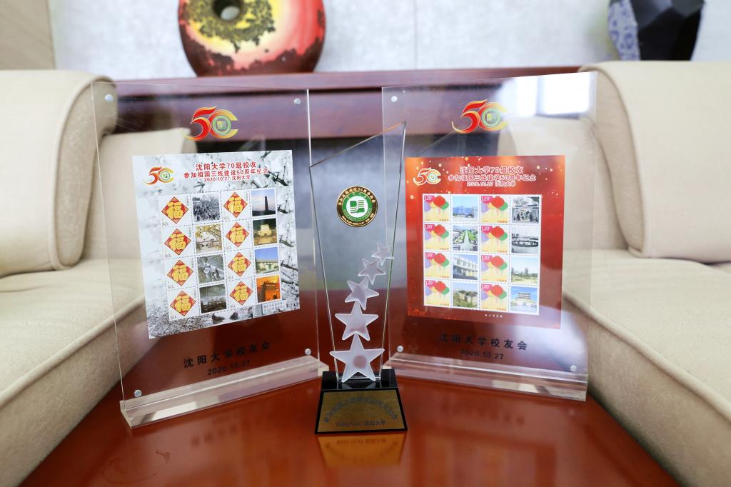 会谈后,姜荣向母校和校友总会赠送了70级校友赴陇参加祖国“三线建设”50周年纪念邮票册、水晶纪念碑,赵彦志、王晓初分别代表学校接受了捐赠。