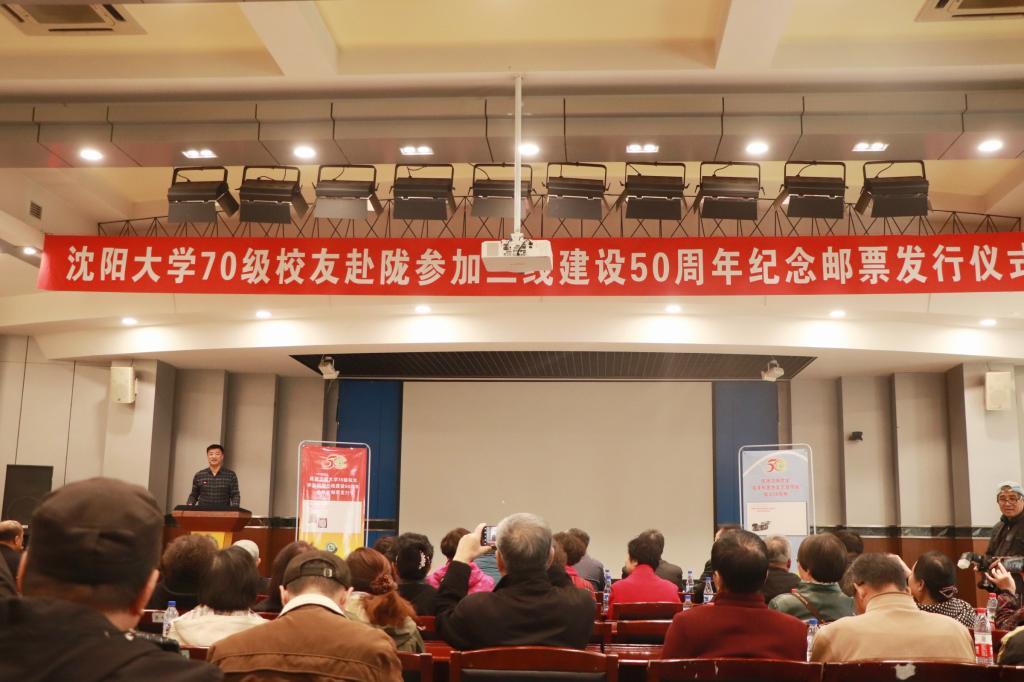 在纪念邮票发行仪式上,王晓初首先代表学校对70级校友50余名代表荣归母校表示热烈欢迎,介绍了学校发展战略和目标,并对广大陇西校友在“三线建设”中以吃苦耐劳、不畏艰险的顽强斗志熔铸出的艰苦创业精神和在那段历程中凝结成的珍贵情感给予了高度评价。他指出,广大陇西校友的“三线建设”岁月是一段美好的奋斗记忆,广大陇西校友长期以来对母校心怀感恩,以资金、智力、技术等各种方式回馈母校,是推动母校建设和发展的重要力量。陇西校友们的成长之路、奋斗精神、工作业绩是母校对学生进行思想教育的宝贵财富。