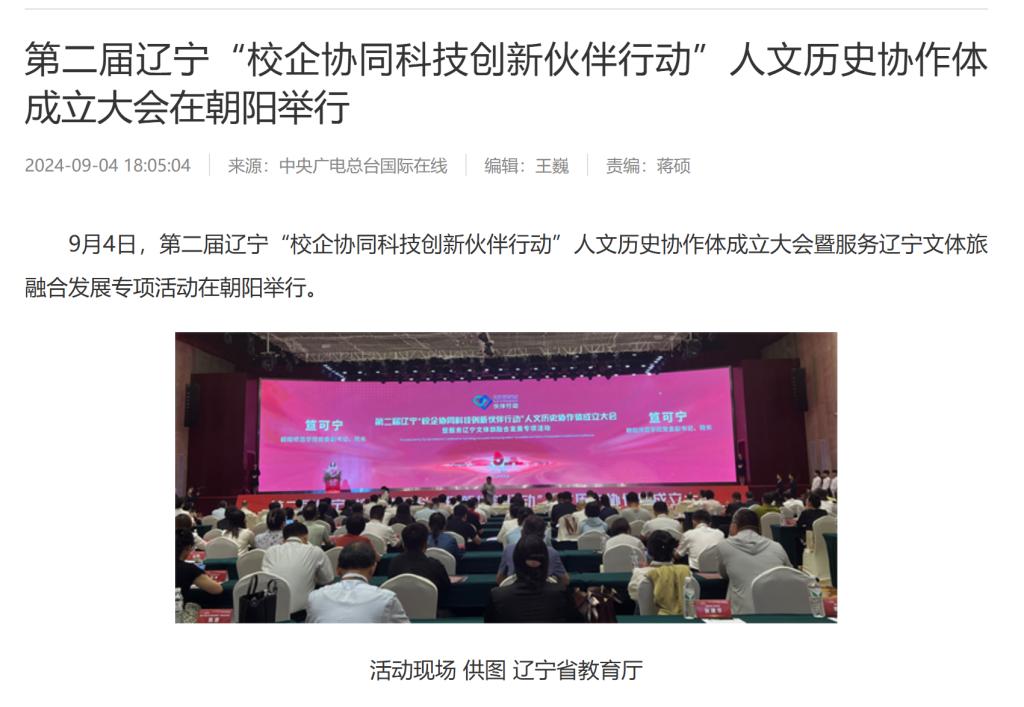 9月4日,第二届辽宁“校企协同科技创新伙伴行动”人文历史协作体成立大会暨服务辽宁文体旅融合发展专项活动在朝阳市举行。本次活动由辽宁省教育厅、省发改委、省科技厅、省工信厅、省农业农村厅、省文旅厅、省知识产权局、省工商联等八部门联合主办,辽宁师范大学与朝阳师范学院共同承办。活动旨在推动历史文化遗产的保护传承与活化利用,加快培育壮大文体旅领域新质生产力。