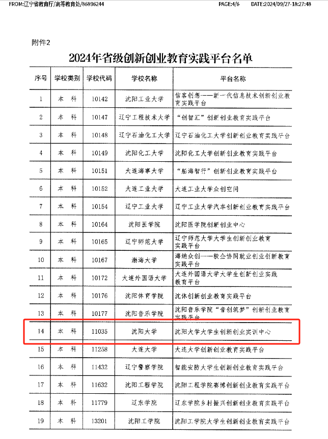 9月27日,辽宁省教育厅公布了2024年省级创新创业教育实践平台名单,我校大学生创新创业实训中心成功获批2024年省级创新创业教育实践平台。