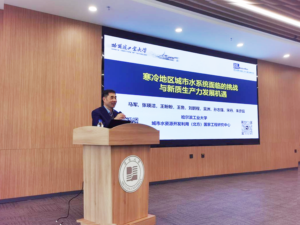 讲座上,马军院士详细阐述了寒冷地区城市水系面临的挑战,包括低温条件下水体净化效率的降低、北方水系安全面临的威胁等。同时,他也指出了这些挑战背后所孕育的新质生产力发展机遇,如推动水处理技术的革新、促进水系生态修复与绿色发展以及构建智慧化城乡水系统等。