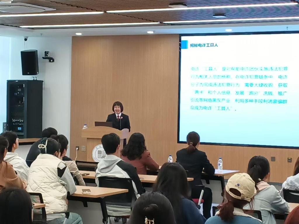 10月25日下午,学校在图书馆报告厅举办“青春同心反诈同行--不做电诈工具人”主题宣讲会。邀请沈阳市大东区人民检察院检察官王婷婷为师生宣讲反诈常识。学生工作处、法律事务中心相关同志,各学院辅导员及学生代表参加了此次活动。