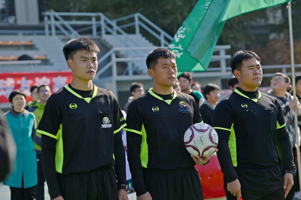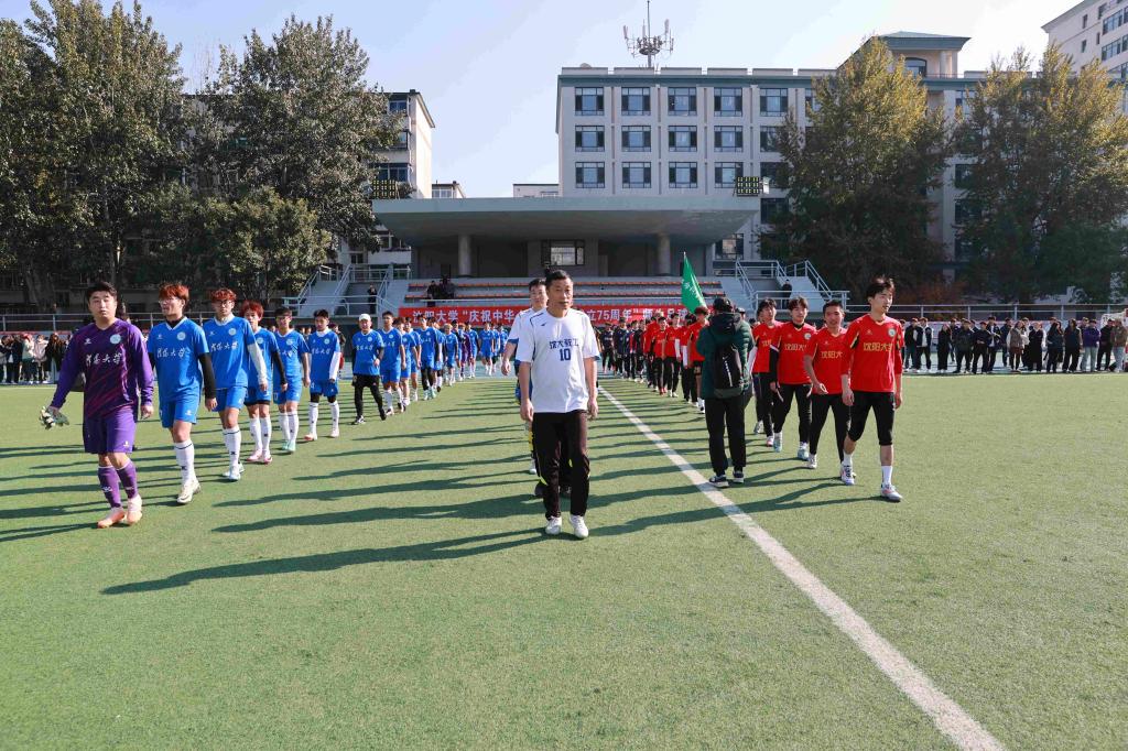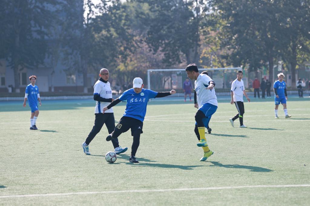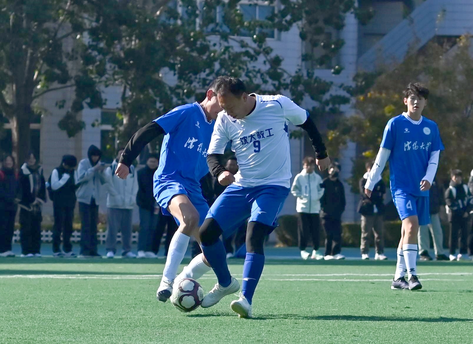 本次比赛分为上下两个半场,上半场为教职工足球队对阵2024级新生男子足球队,下半场为新老学生男子足球队之间的对决。校党委书记曲向军、校党委专职副书记王晓初、校务委员解勇应邀加入三支参赛队伍上场比赛。