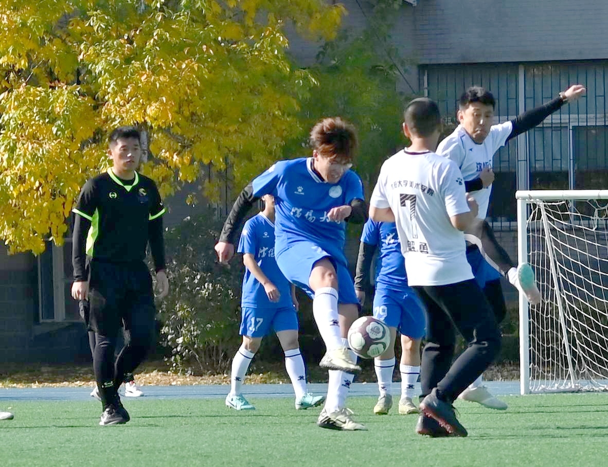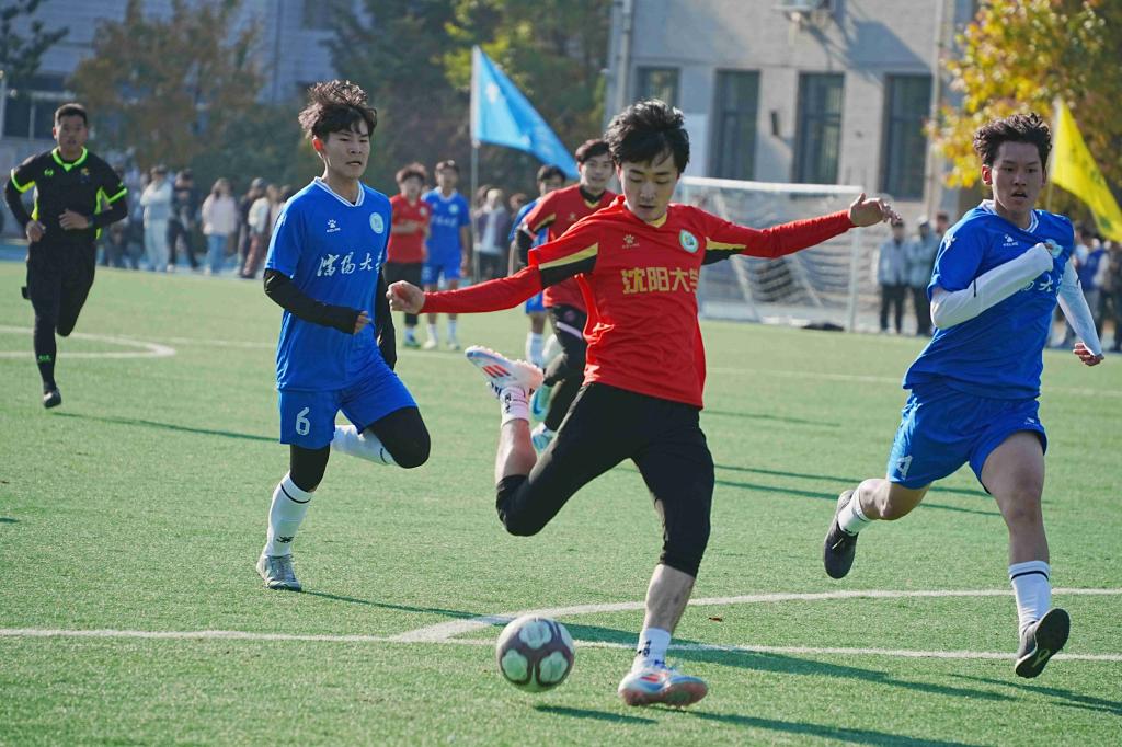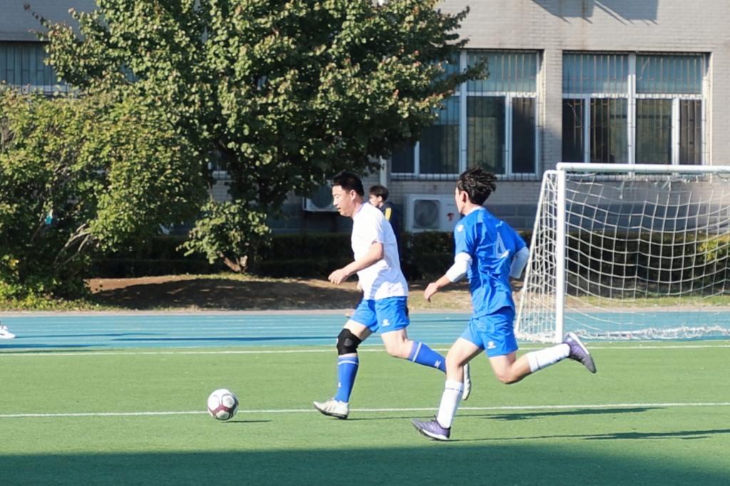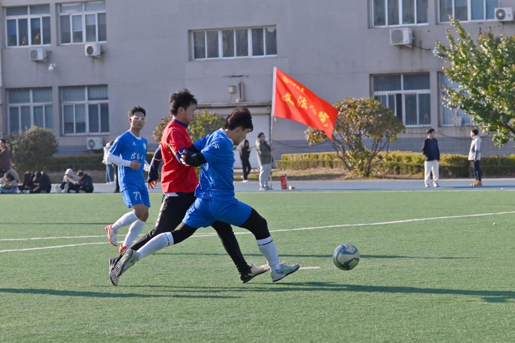 本次比赛分为上下两个半场,上半场为教职工足球队对阵2024级新生男子足球队,下半场为新老学生男子足球队之间的对决。校党委书记曲向军、校党委专职副书记王晓初、校务委员解勇应邀加入三支参赛队伍上场比赛。