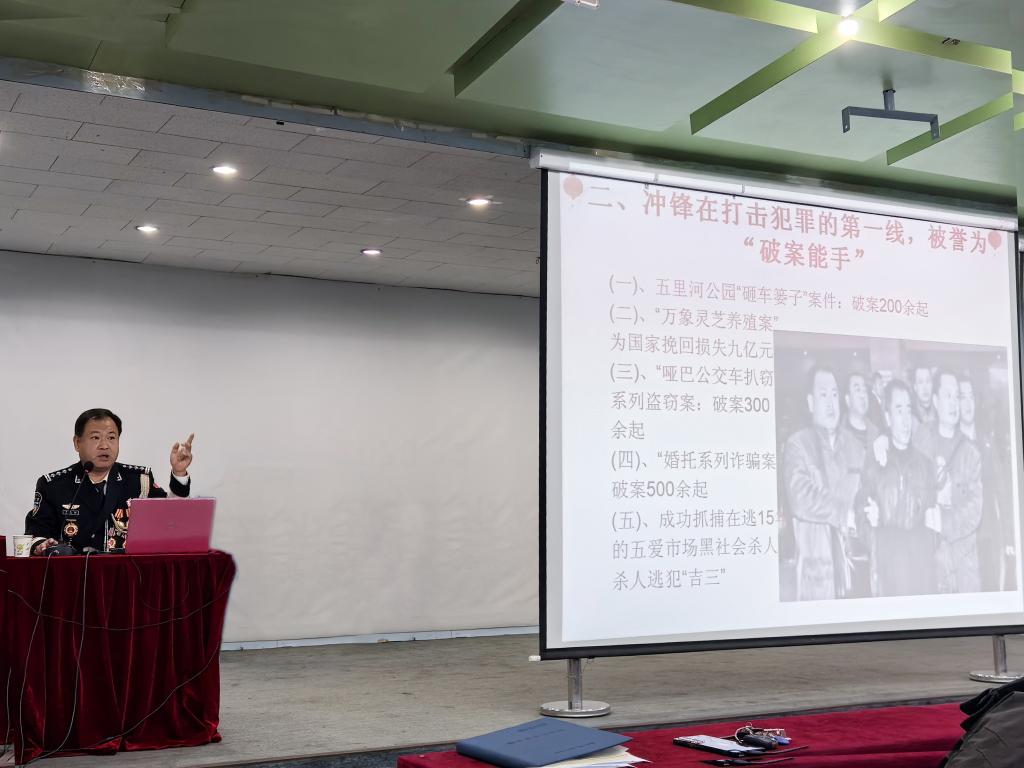 此次报告会,是学校“传承红色基因、学思践悟中国共产党人精神谱系”宣传教育系列活动之一。鲁振伟警官围绕“不忘初心、牢记使命,做一颗永不生锈的螺丝钉”主题,结合亲身工作经历,从“冲锋在打击犯罪的第一线”“坚持义务普法三十年”“研发警察反家庭暴力课题”和“工作中时刻以人民利益为重”等方面讲述了自己在党的关怀教育下不断进步发展的成长历程和感悟。