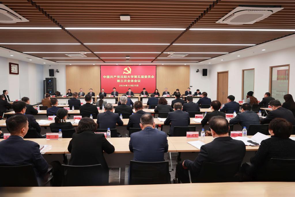 中国共产党沈阳大学第五届委员会第三次全体会议,于2024年12月25日在学校图书馆举行。出席这次全会的有,党委委员26人。全会由学校党委常委会主持。党委书记曲向军作了讲话。校长赵彦志,校纪委委员和各学院、各部门党政主要负责同志列席会议。