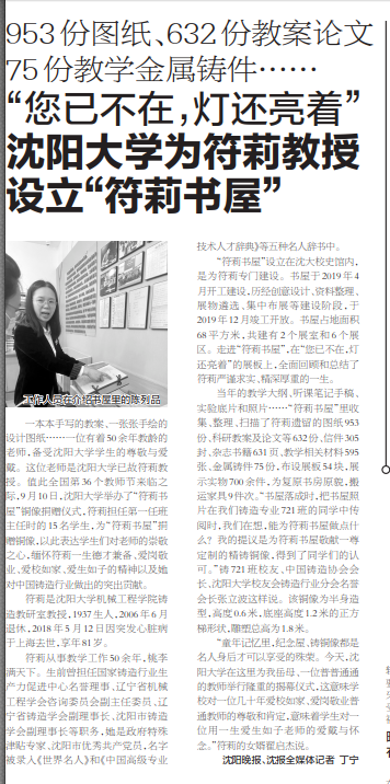 9月11日,《沈阳晚报》报道了我校设立“符莉书屋”相关情况。