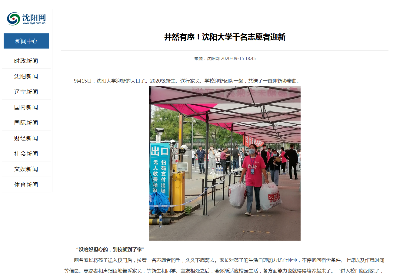 9月15日,沈阳网报道了我校新生报到相关情况。