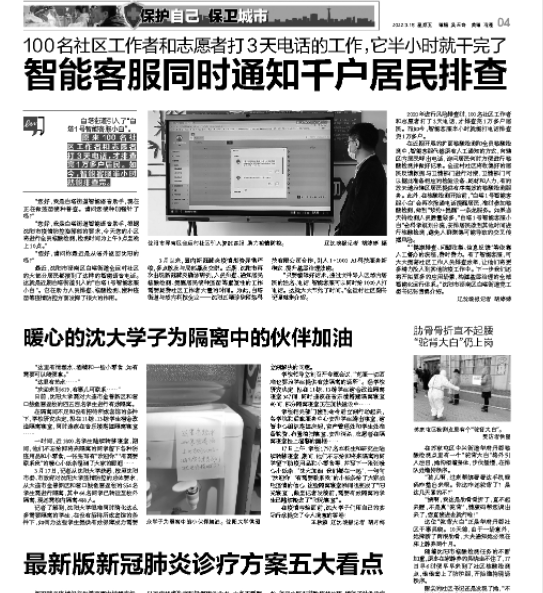 3月18日,《辽沈晚报》以题为“暖心的沈大学子为隔离中的伙伴加油”报道了我校学子众志成城迎战疫情的事迹。