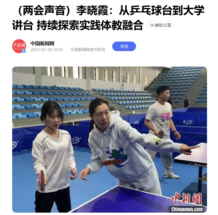 入职沈阳大学以来,李晓霞关心学校的建设与发展,坚持立德树人的根本任务,深入研究,不断优化乒乓球教学模式,推动大学生乒乓球运动技能的提高和身体素质的提升,在新的工作岗位上做出了突出成绩。此次参加全国两会,她也将带来推动青少年体育运动发展的相关议案。