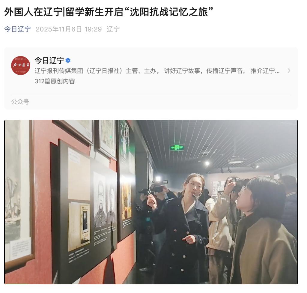 11月6日,【今日辽宁】报道了我校留学生的“沈阳抗战记忆之旅”。