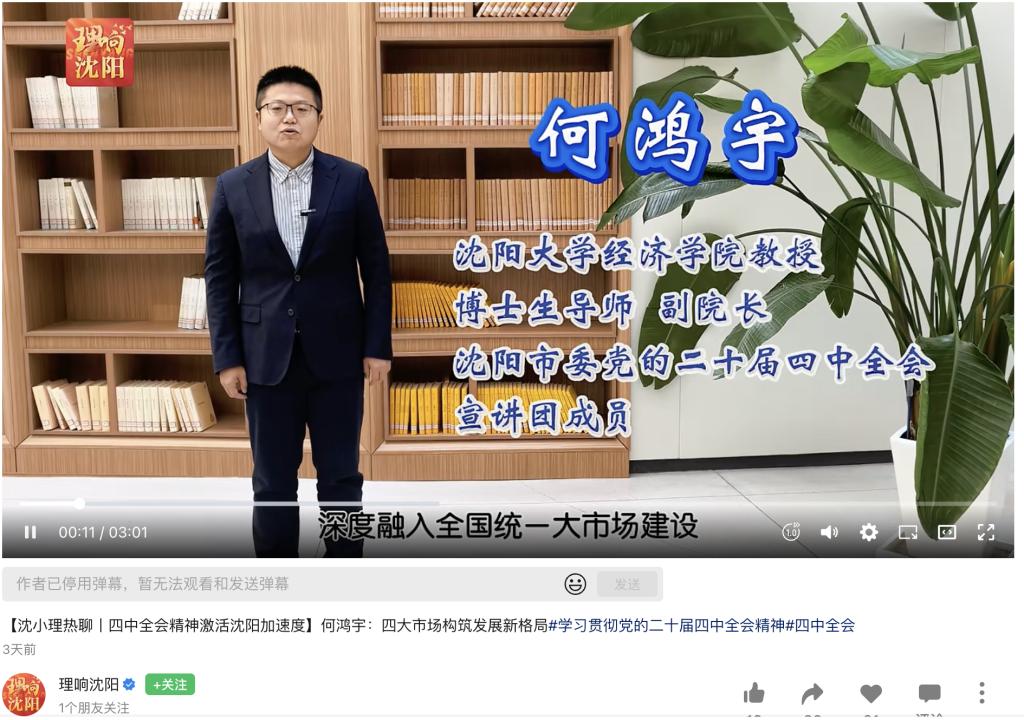 11月27日,【理响沈阳】邀请了我校经济学院何鸿宇教授讲述四大市场构筑发展新格局。