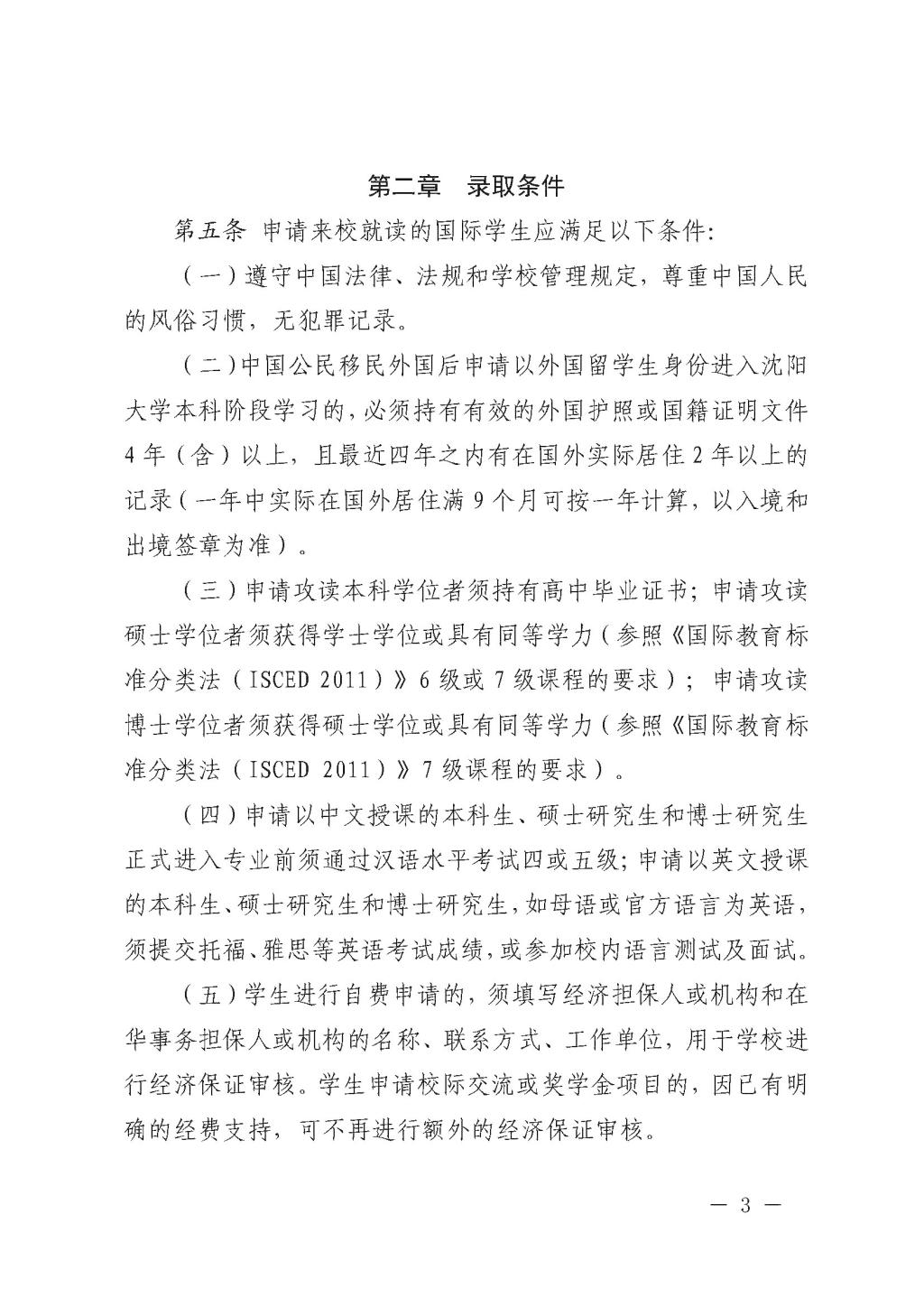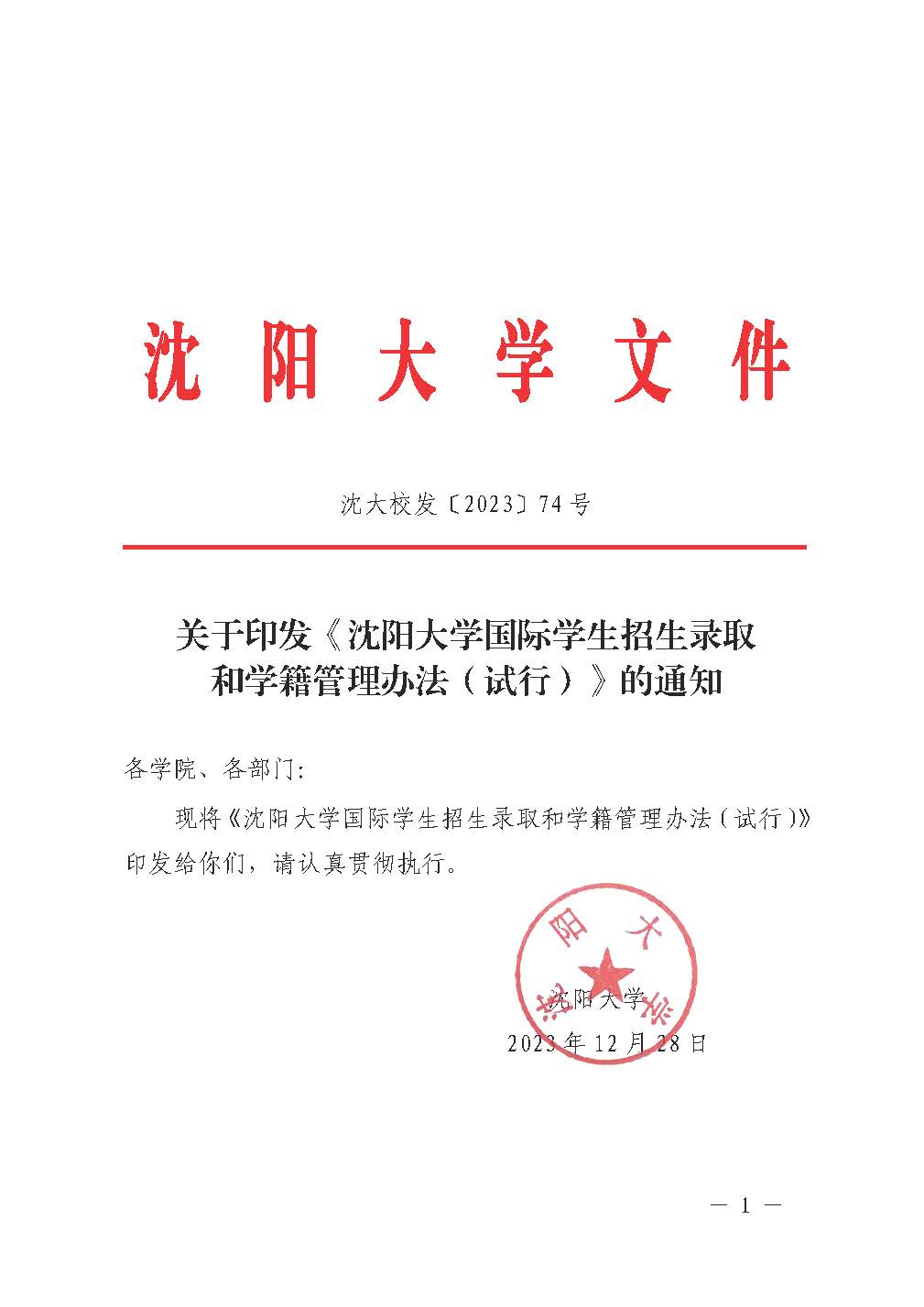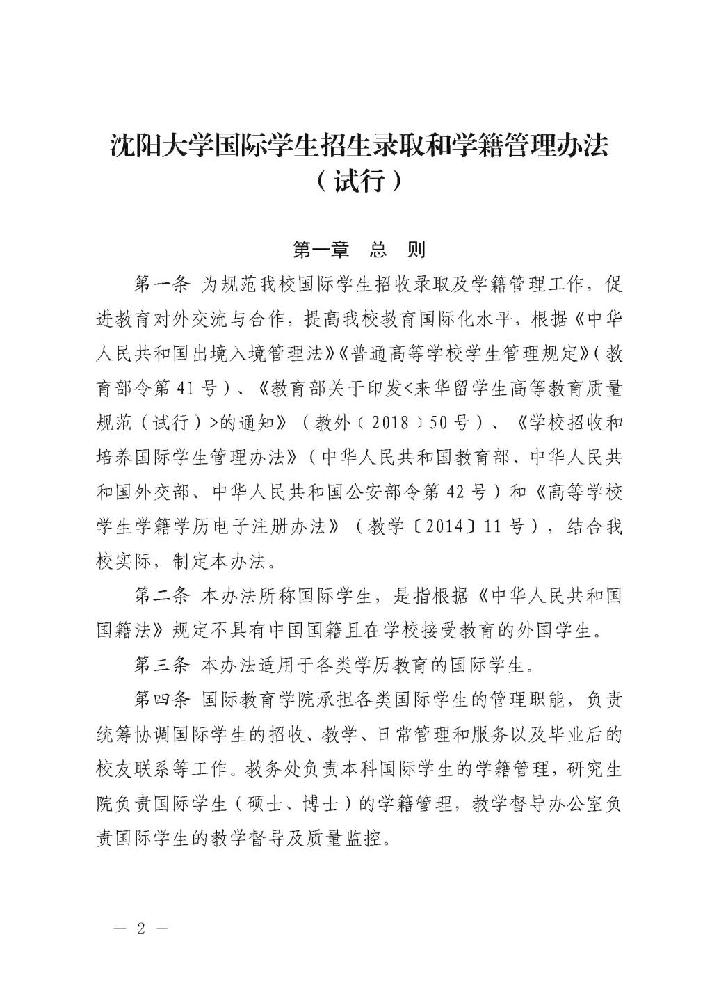 关于印发《沈阳大学国际学生招生录取和学籍管理办法(试行)》的通知