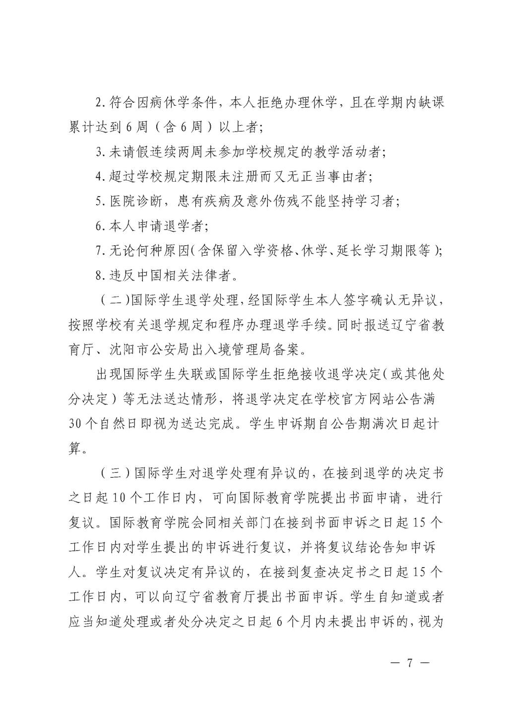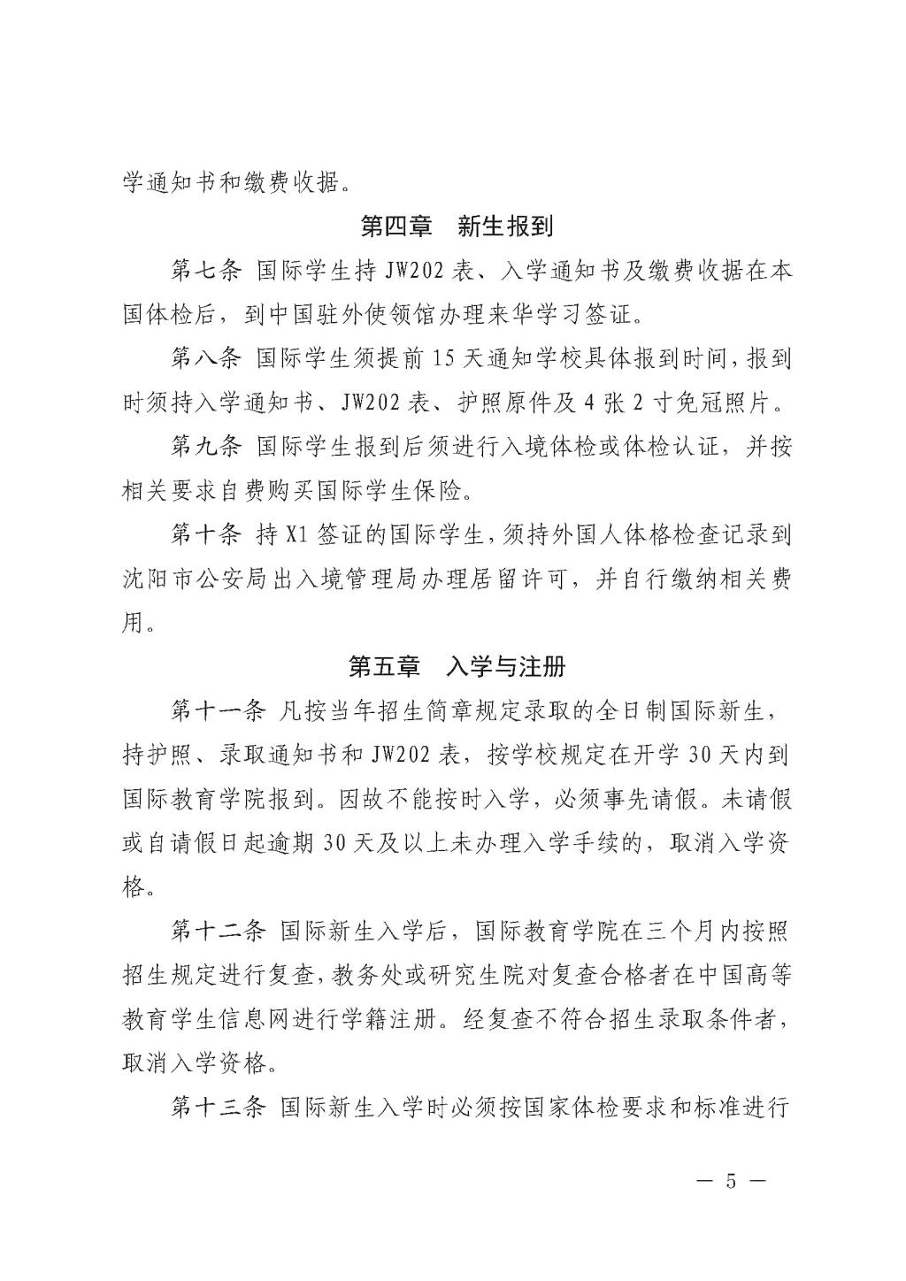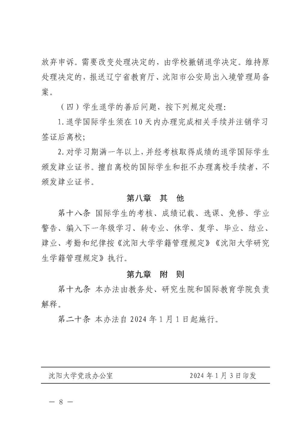 关于印发《沈阳大学国际学生招生录取和学籍管理办法(试行)》的通知