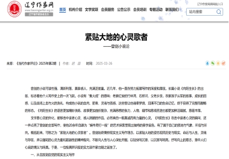 近日,沈阳大学师范学院教授、辽宁文学特聘评论家迟蕊撰写的《紧贴大地的心灵歌者——曾剑小说论》在中国当代文学研究权威期刊《当代作家评论》(2025年第2期)上正式发表,并被中国作家网、辽宁作家网转载。这是落实学校科研大会精神、大抓科研核心指标取得的又一重要成果,科研工作正以服务区域经济社会的新成效全力助推学校同类院校全国一流大学建设的加速度。